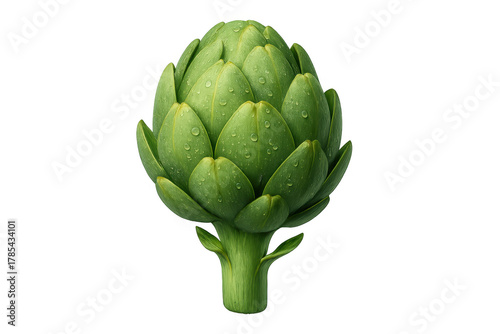 Obraz premium Fresh green artichoke with water drops, a healthy vegetarian vegetable ingredient, transparent background