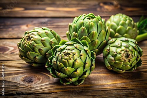 Obraz premium Fresh green artichokes being cooked on wooden background