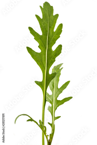 Fototapeta premium Fresh green arugula (Eruca vesicaria) leaves, isolated on white background. Green eco life diet