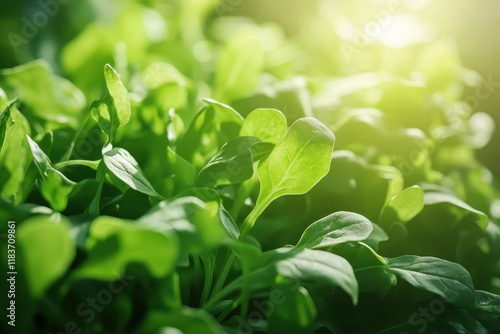 © LimeSky, Obraz premium Fresh green arugula in an organic salad with spinach leaves