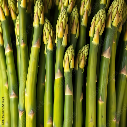 © Daniel Rabadán, Fototapeta premium Fresh Green Asparagus Spears Close Up Vertical Pattern Background