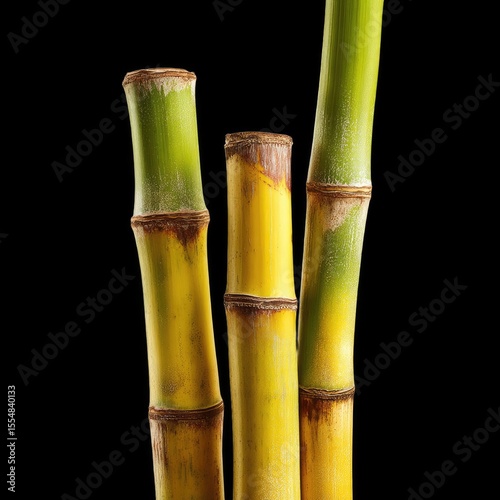 Fototapeta premium Fresh Green Bamboo Stalks Against Black Background, Natural Beauty