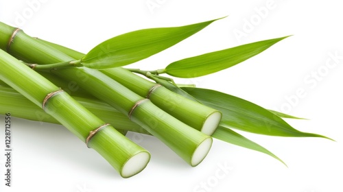 Obraz premium Fresh Green Bamboo Stalks and Leaves Isolated