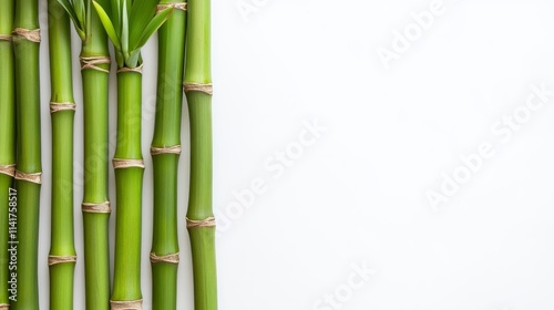 Fototapeta premium Fresh green bamboo stalks arranged against a light background, symbolizing...