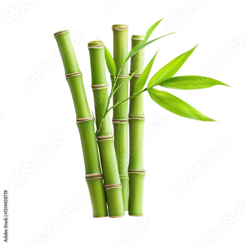 © Foxgrafy, Obraz premium Fresh green bamboo stalks with leaves on a transparent background