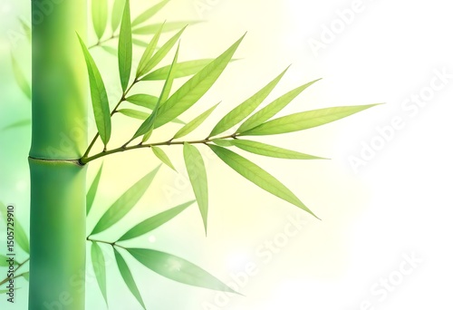 © Bandhan, Fototapeta premium Fresh green bamboo stem and leaves with soft gradient natural background high resolution photo