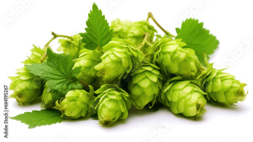 Fototapeta premium Fresh green beer hops isolated on a white background.