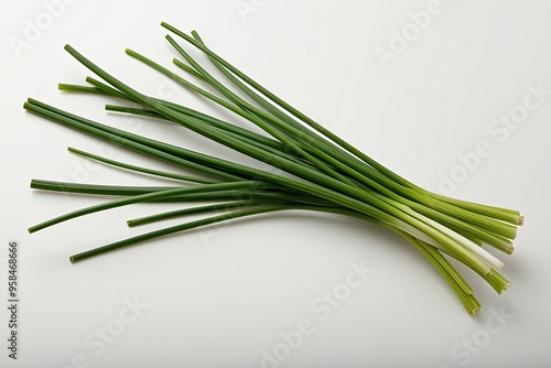 © Michael, Fototapeta premium Fresh Green Chive Stalk Isolated on Bright White Background for Culinary Use