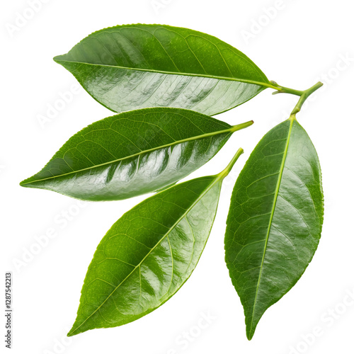 © Kasorn, Fototapeta premium Fresh green citrus leaves isolated on a transparent background