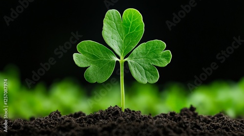 Naklejka premium Fresh Green Clover Plant Emerging from Dark Rich Soil
