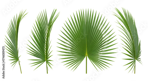 © Siti Bedah, Obraz premium Fresh green coconut palm fronds, meticulously arranged horizontally, white background isolated