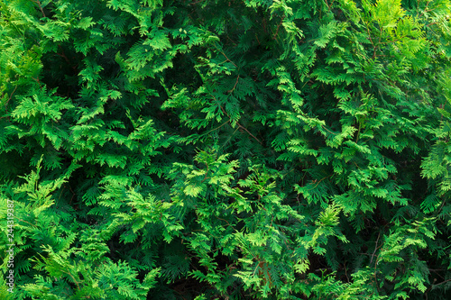 Fototapeta premium Fresh green evergreen tree thuja branch texture