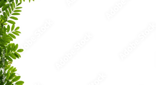 © okayon, Fototapeta premium Fresh Green Foliage Bordering Blank White Canvas for Creative Design