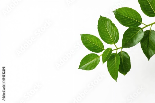 © GenZGraphics, Fototapeta premium Fresh green foliage on a white background summer theme, nature, spring, white, green, plant, growth collection
