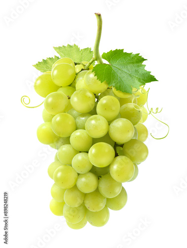 © Paitoon, Obraz premium Fresh green grape cluster isolated on white background.