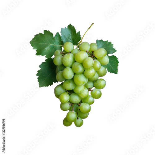 © Sasha, Obraz premium Fresh green grapes with green leaves isolated on transparent background