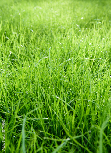 © stillforstyle, Fototapeta premium fresh green grass background with dew drops. summer background