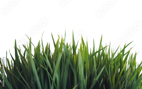 Fototapeta premium Fresh Green Grass Blade Cluster Isolated on White