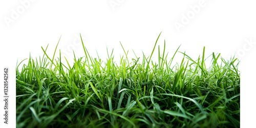 Fototapeta premium Fresh green grass blades growing close to the ground beautifully on transparent background, cut out, PNG 3D Digital Art, clip art.