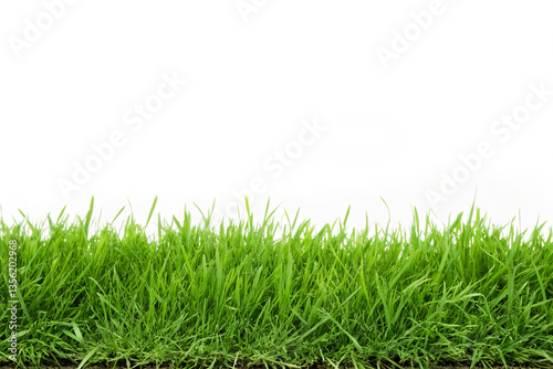 Fototapeta premium Fresh Green Grass Blades on White Background for Nature Textures and Garden Themes