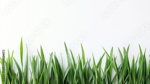 © hanafi 99d, Fototapeta premium Fresh Green Grass Border on White Background