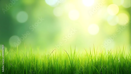 Obraz premium Fresh Green Grass Field with Soft Bokeh Background