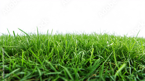 Fototapeta premium fresh green grass in sharp focus with a pure white background emphasizing...
