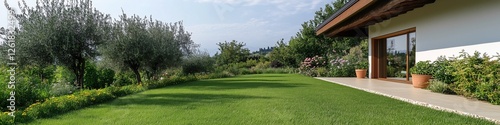 © Elena, Fototapeta premium Fresh green grass lawn in sunlight, perfect for garden, landscaping, nature, and outdoor themes. Ideal for backgrounds, eco projects, and summer vibes