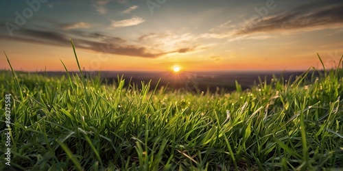 Fototapeta premium Fresh green grass sunset morning view