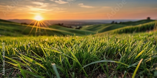 Fototapeta premium Fresh green grass sunset morning view