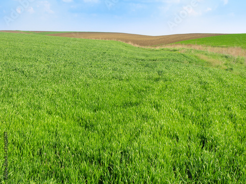 © Željko Radojko, Naklejka premium fresh green grass with bright blue sky