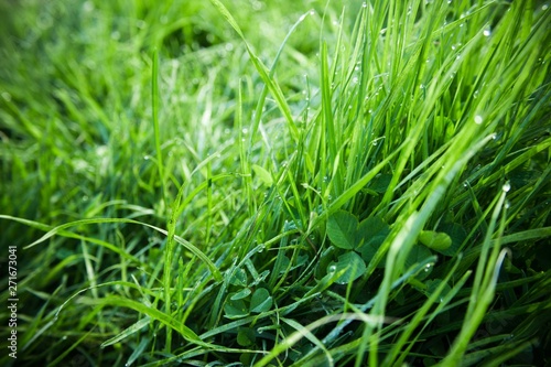 Obraz premium Fresh green grass with dew drops