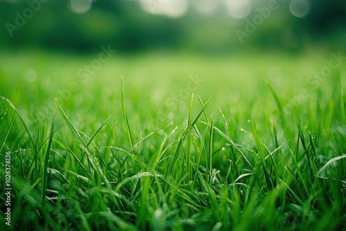 Fototapeta premium Fresh Green Grass with Dew in Natural Setting