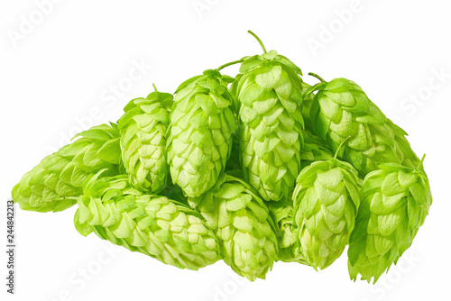 © Igor Dudchak, Obraz premium Fresh green hop cones isolated on white background