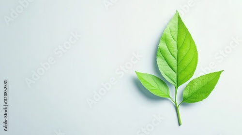 Fototapeta premium Fresh green leaf on a soft white background symbolizing nature and...