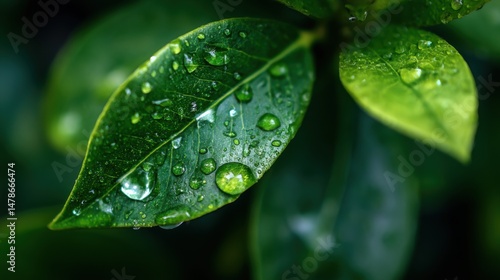 Fototapeta premium Fresh green leaf with glistening water droplets, a symbol of nature's...