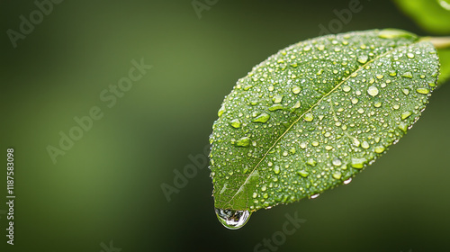 Fototapeta premium Fresh green leaf with water droplets, showcasing nature beauty and detail. vibrant colors and textures highlight importance of water in plant life
