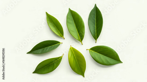 Fototapeta premium Fresh green leaves arranged in a circular pattern plant nature