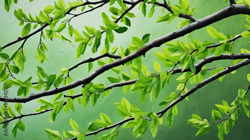 Obraz premium Fresh green leaves budding on tree branches
