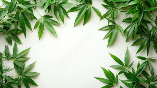 © nur, Naklejka premium Fresh green leaves frame a white background