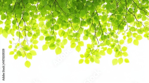 Fototapeta premium Fresh green leaves hang creating light, airy canopy and nature concept theme
