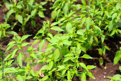 © Bowonpat, Obraz premium Fresh green leaves of hairy basil plant