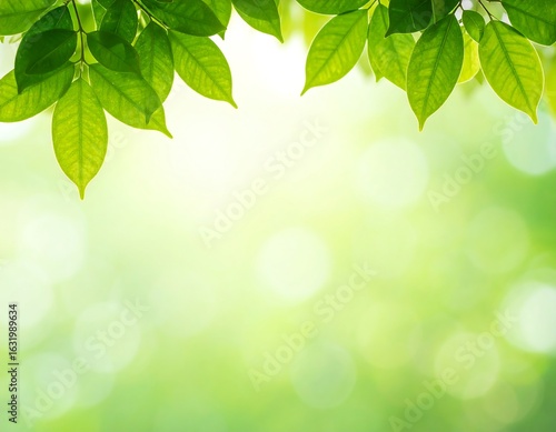 © Hulmairah, Naklejka premium Fresh green leaves on blurry background