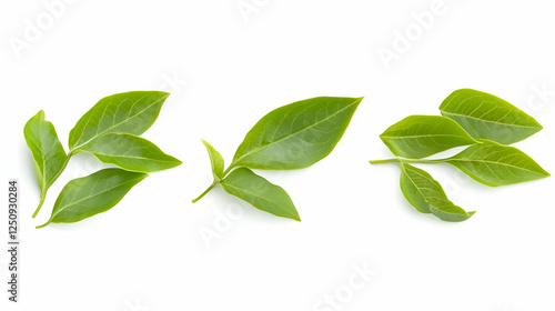 Naklejka premium Fresh green leaves on clean white background for natural health,...
