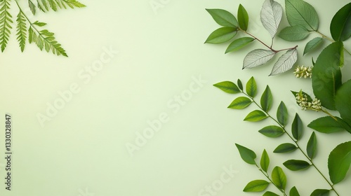 © op, Naklejka premium Fresh Green Leaves on Soft Background for Nature and Wellness Themes