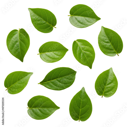 © Havoc, Fototapeta premium Fresh green leaves pattern on black background for nature or botanical design and decoration use on transparent background