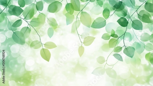 Fototapeta premium Fresh green leaves, sunlight, bokeh, nature
