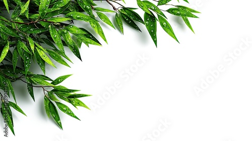 © Pix, Fototapeta premium Fresh green leaves with water droplets, corner border