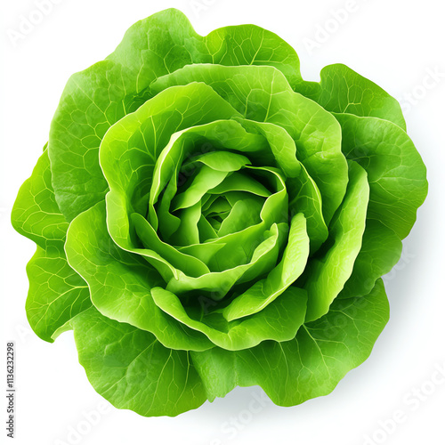 © Alex, Fototapeta premium Fresh green lettuce head with crisp leaves on a white background.