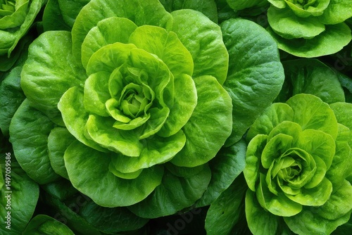 Fototapeta premium Fresh Green Lettuce Heads Growing in Garden